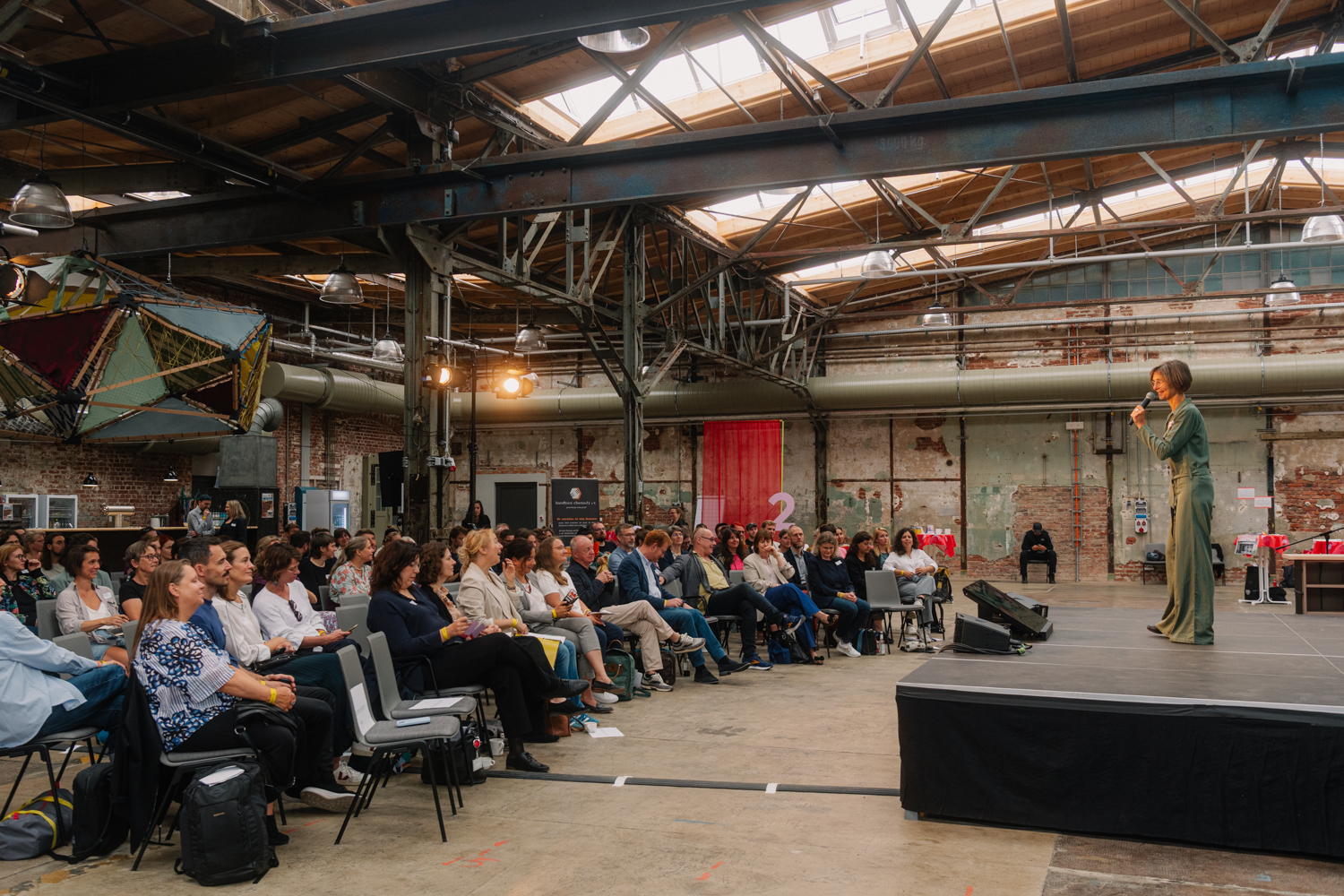 • seitlicher Blick auf das Publikum in den voll besetzten Stuhlreihen