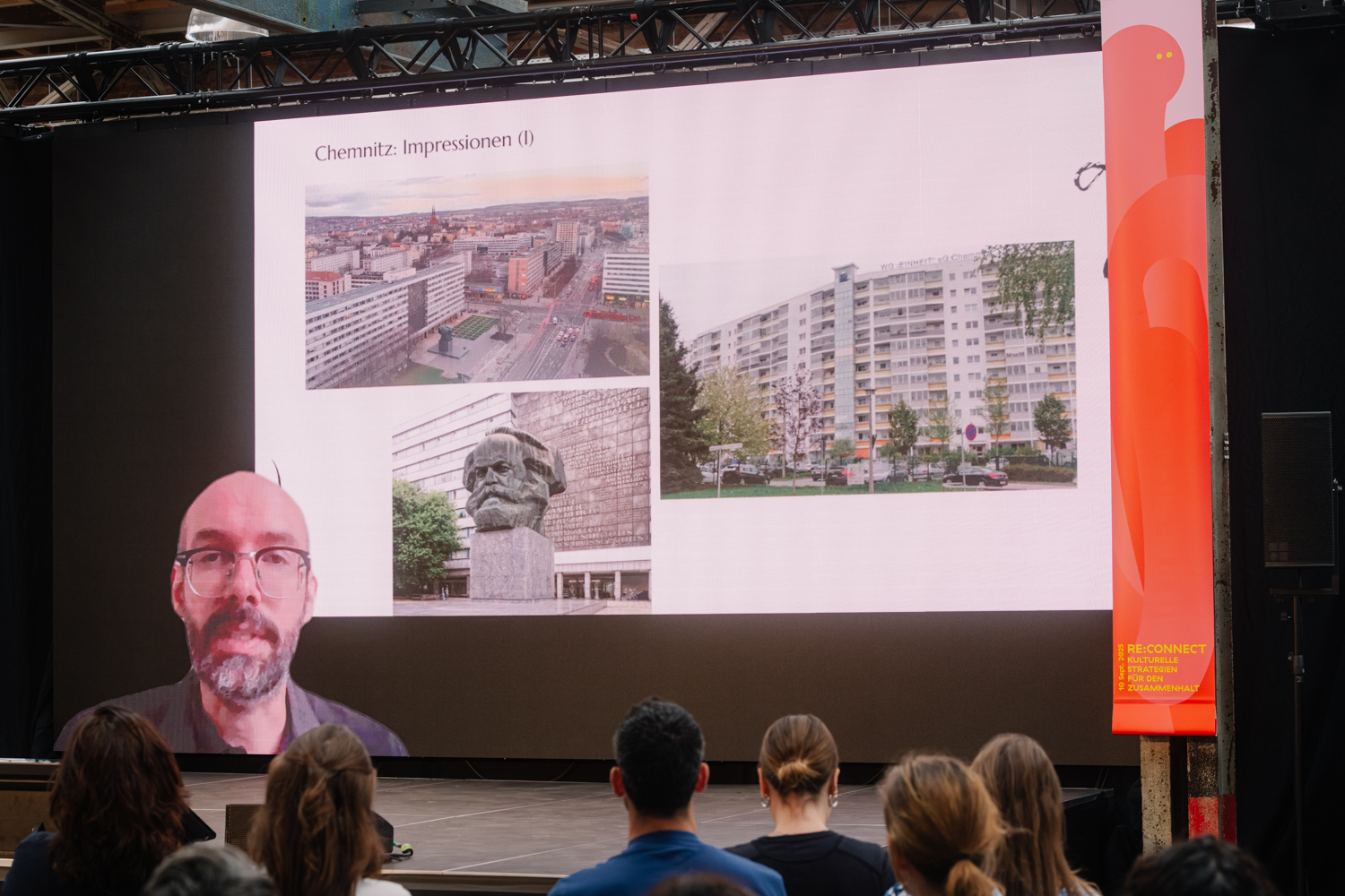 • Vortrag über Zoom, zu sehen sind Impressionen von Chemnitz