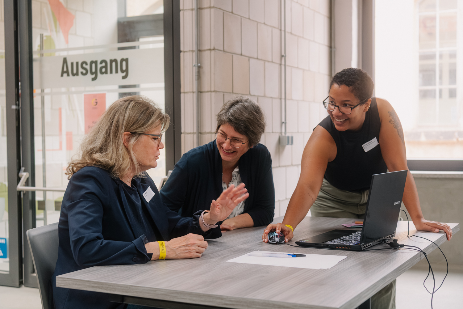 • eine Person vor einem Laptop, die anderen schauen ihr über die Schulter
