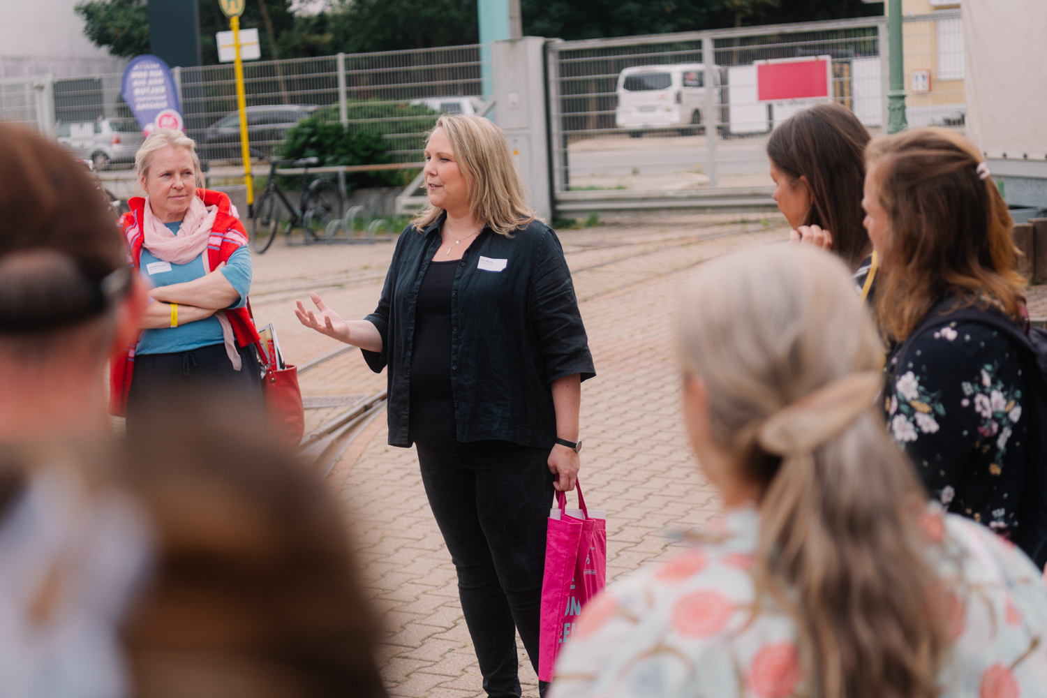 Tina Winkel führt über den Garagen-Campus © Tim Gassauer