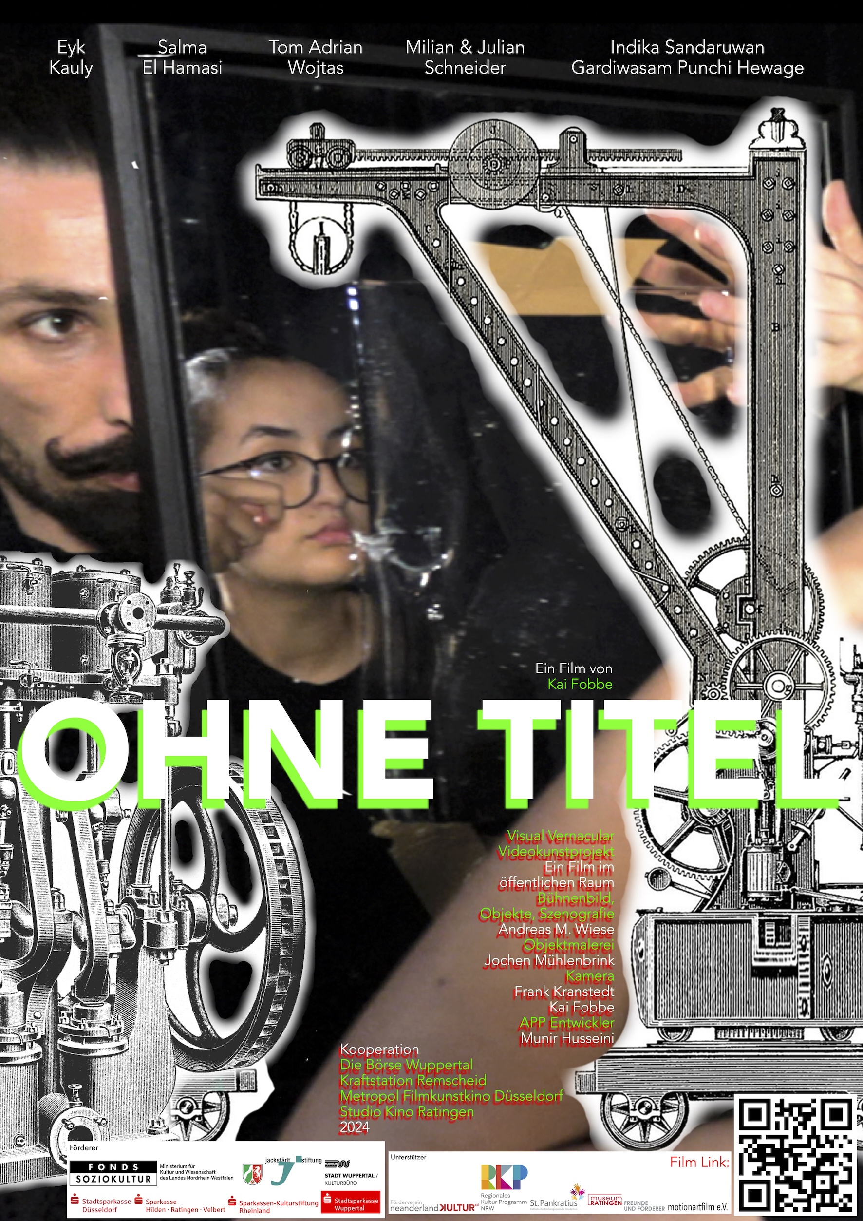 "Der Film Ohne Titel führt auf eine imaginäre, bild-hafte Reise ins Bergische Land. Bilder vom Bergischen Land — genauer: Bilder, die viele Menschen sofort an das Bergische Land denken lassen — bilden in diesem Film den Rahmen. Sie bilden eine Bühne und auf dieser Bühne nehmen uns Schauspielerinnen und Schauspieler mit in ihre Bilder-Welt — ihre Bilder im Kopf. Sie malen für uns ihre Bilder im Kopf und sie tun das mit Gebärden. Ihr Schauspiel ist ein Spiel mit Gebärden. Dieses Spiel mit Gebärden haben Gehörlose in den USA entwickelt. Der Name dieses Gebärden-Schauspiels lautet Visual Vernacular. Das bedeutet übersetzt „sichtbarer Jargon“. Gemeint ist damit: die Verständigung auf sichtbarer Ebene mit Gebärden aus der Lebenswelt der Gehörlosen. Im Film Ohne Titel drücken sich die Schauspieler in Visual Vernacular aus. Sie erzählen Geschichten in Gebärden in einer freien und künstlerischen Form. Poetisch — bunt und vielgestaltig — spielt der Film in der Welt der Phantasie und in der Lebenswelt." -Kai Fobbe
